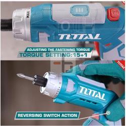 المواصفات الفنية :4.8 فولط - 180 دورة بالدقيقةالحد الأقصى لعزم التحكم 3.5 نيوتن متردوران أمامي خلفيمع 1 قطعة 5 - 7 ساعة شحن - مع انارة ليد مع 17 قطعة مفك عادي ومصلب 25 ملم CR مع 6 ريش حفر HSS قياسات 1.5/2/2.5/3/4/5MM مع راس مسدس معبئة بعلبة ملونة